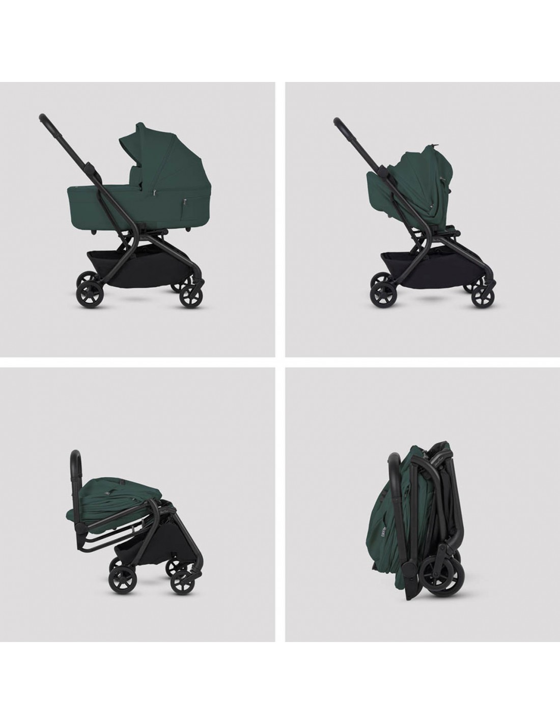 Nia's revolutionary carrycot folds together while still attached to the chassis - a total game changer for compact storage, city living, and life on the move.