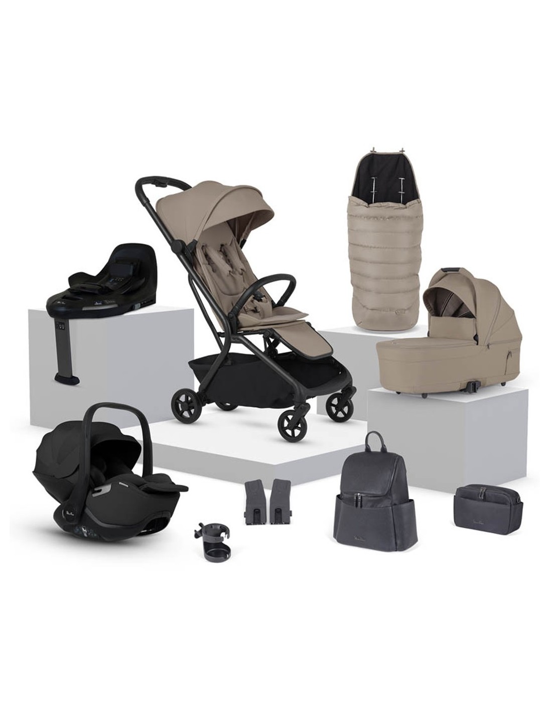 Silver Cross Nia Travel System with Accessories (12 Piece Bundle with Glide Plus 360 Car Seat) - Champagne