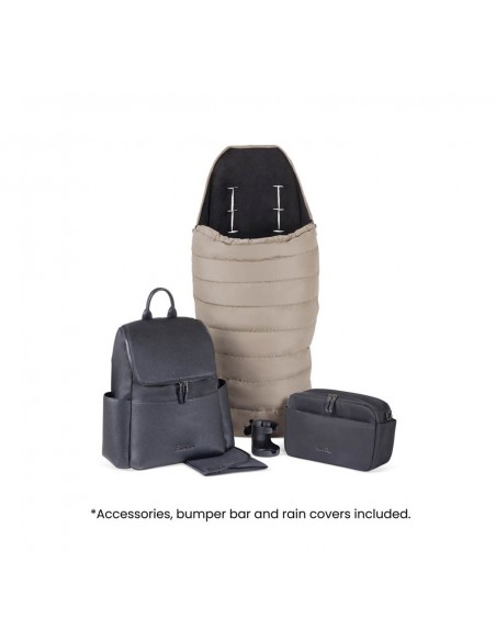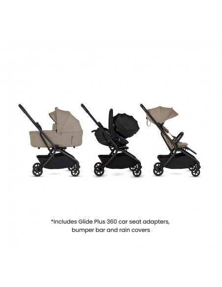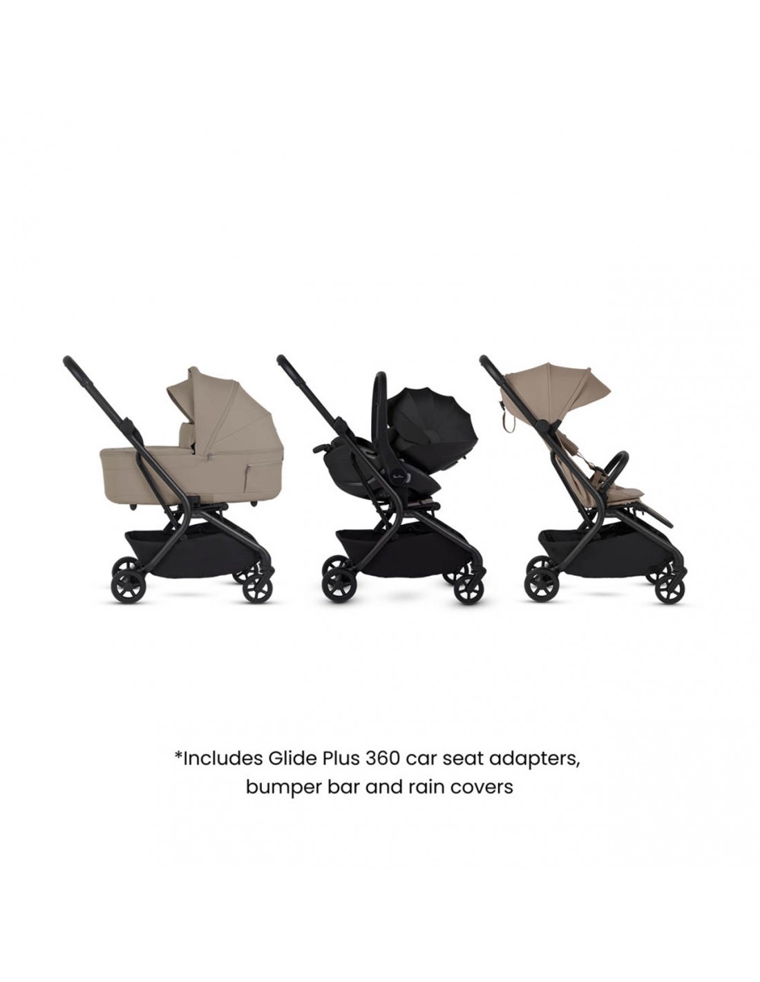 Includes; pushchair (complete with hood and seat liner), carrycot (complete with mattress), Glide Plus 360 car seat, Base Plus 360 IsoFix, bumper bar, x2 raincovers, changing rucksack, footmuff, organiser bag, cup holder and Glide Plus car seat adaptors.