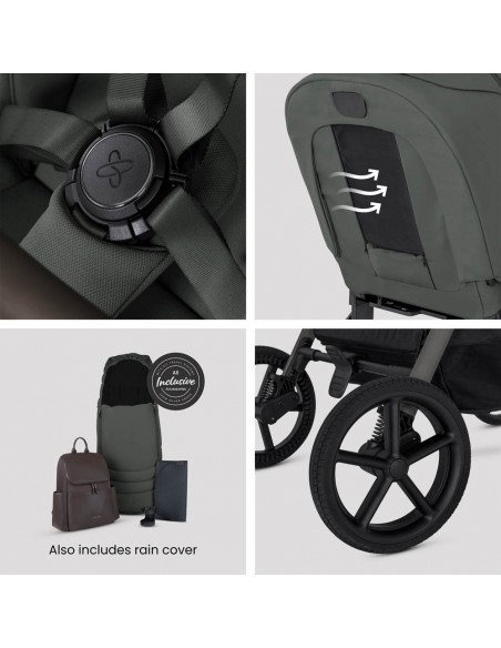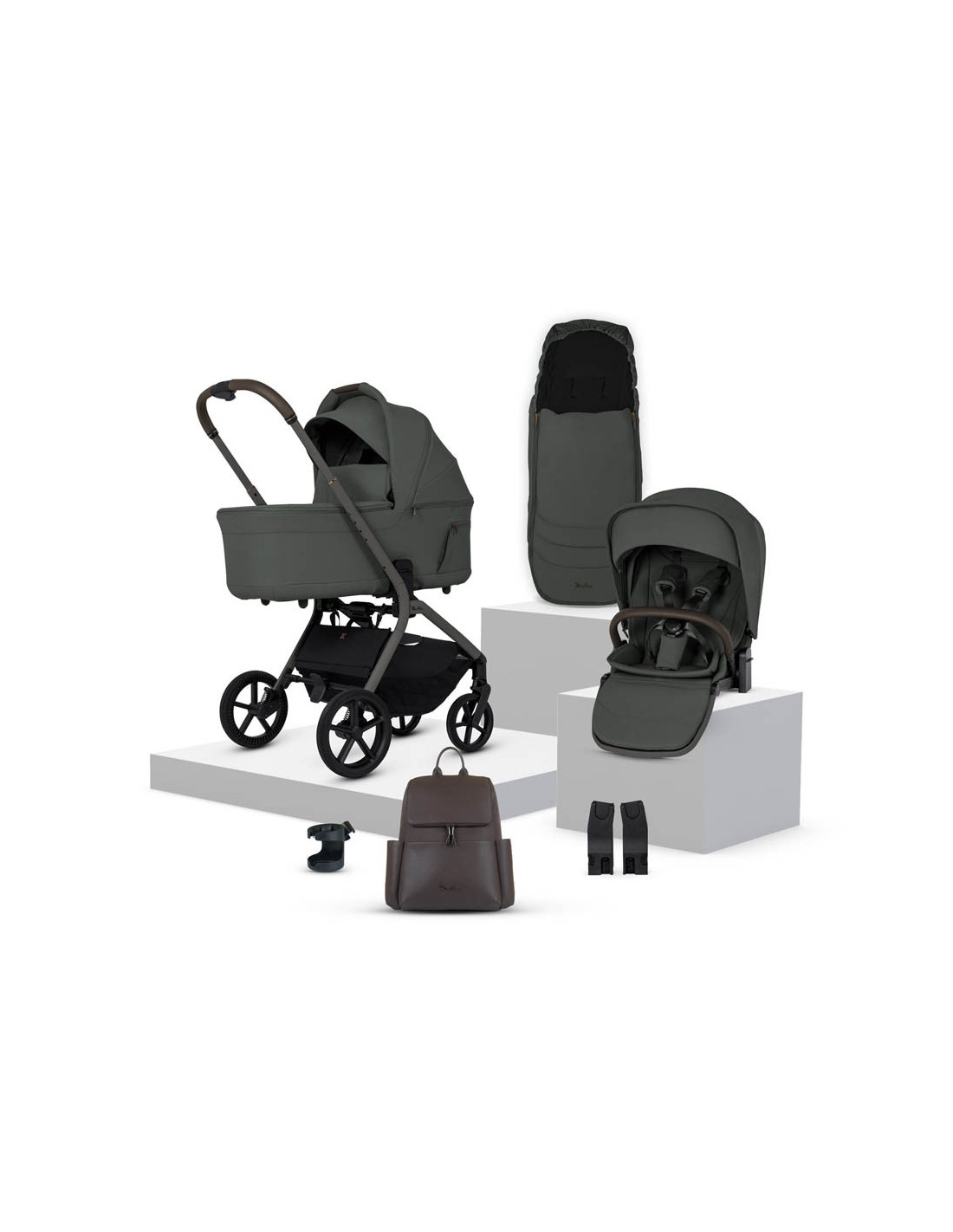 Includes; chassis, seat unit, carrycot, Glide Plus 360, Base Plus 360, seat liner, footmuff, changing bag, cup holder, raincover, bumper bar & universal car seat adaptors.