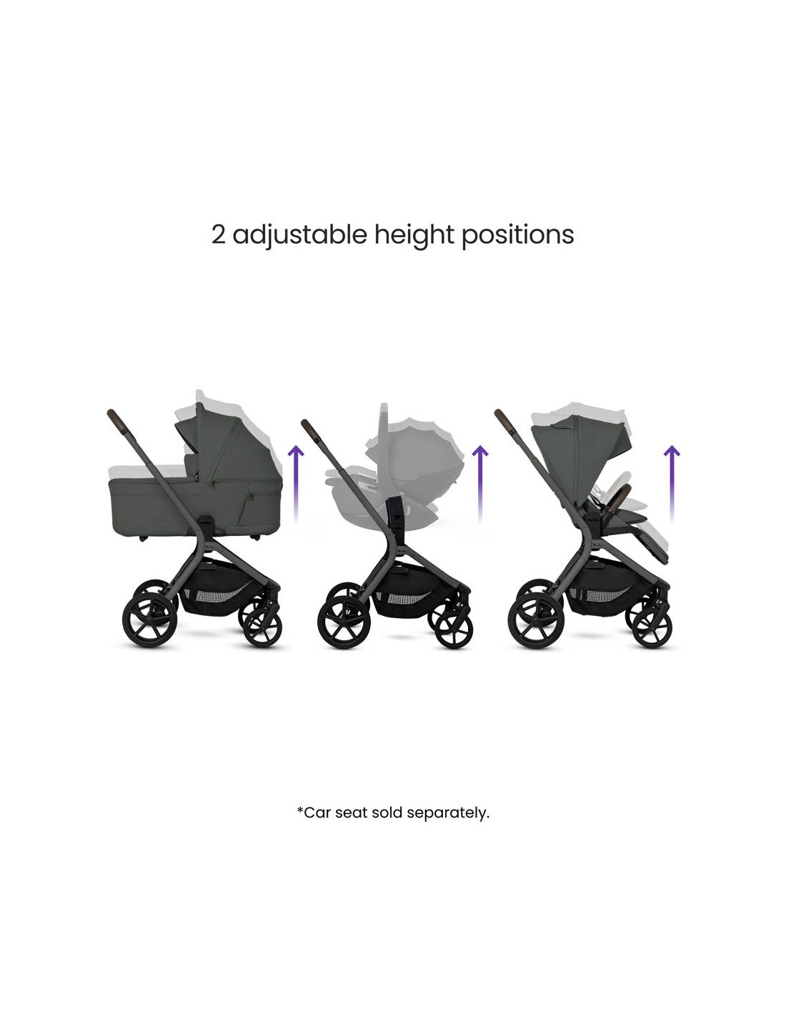 - 2-height elevation system brings baby closer in carrycot, stroller or car seat