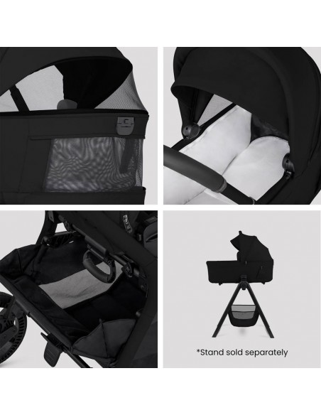 - Game-changing folding carrycot with soft-touch bamboo-lined mattress and panoramic ventilation (included)