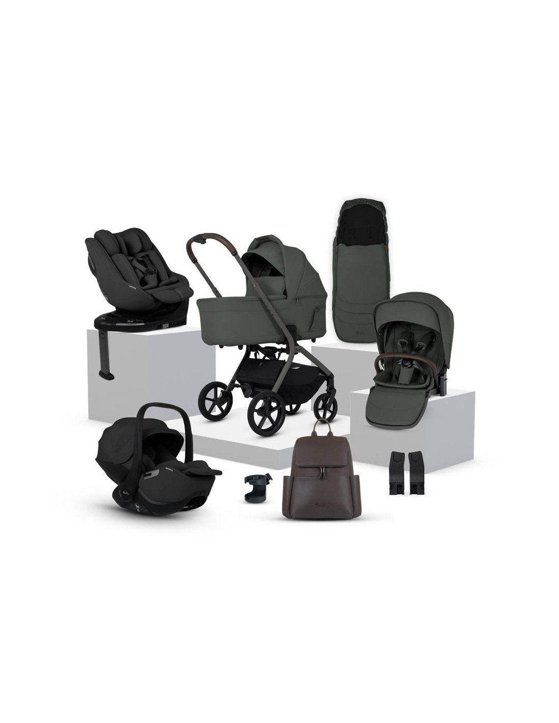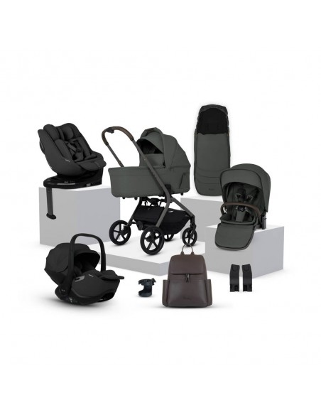 Includes; chassis, seat unit, carrycot, Glide Plus 360, Approach Plus 360, Base Plus 360, seat liner, footmuff, changing bag, cup holder, raincover, bumper bar & universal car seat adaptors.
