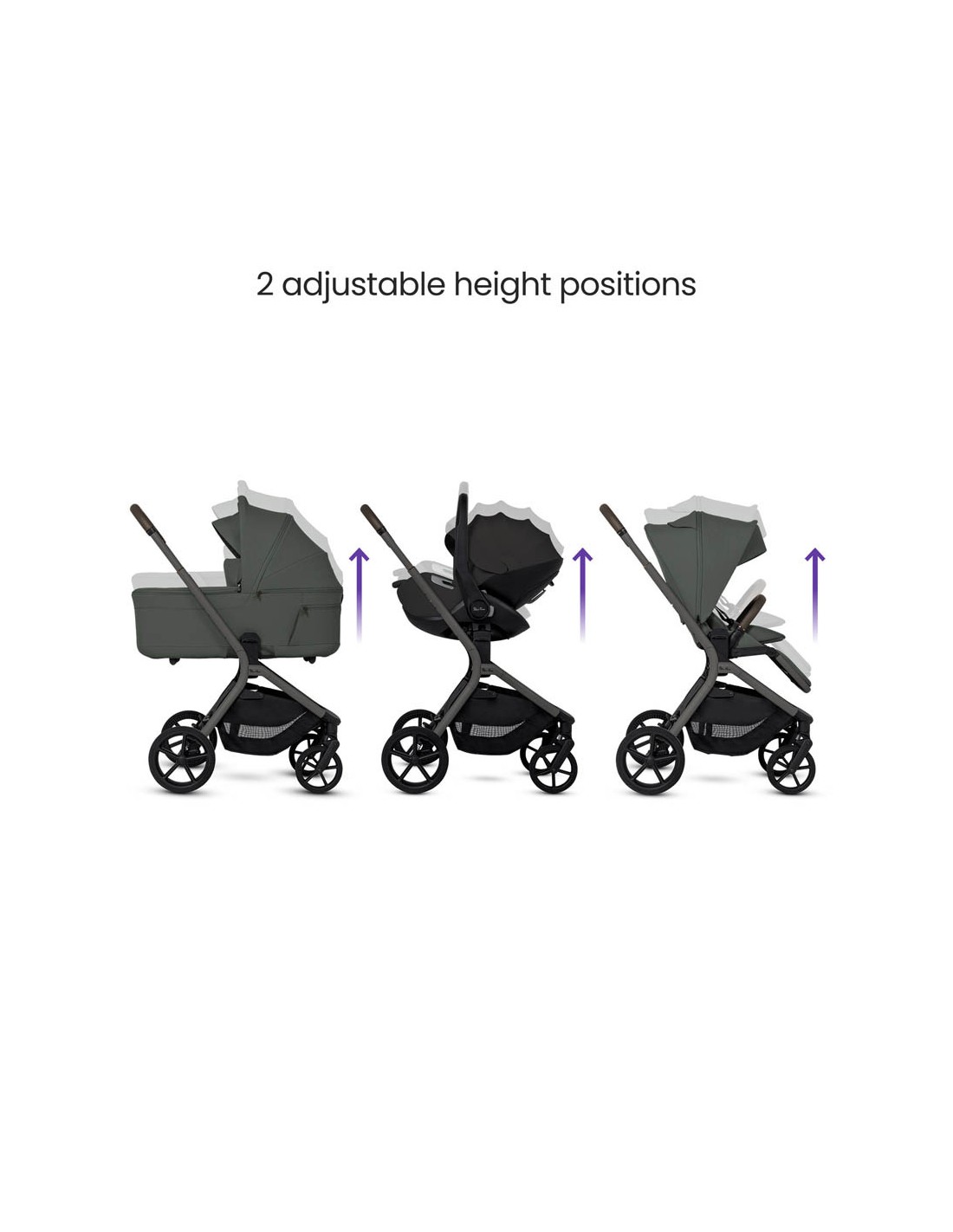 - 2-height elevation system brings baby closer in carrycot, stroller or car seat