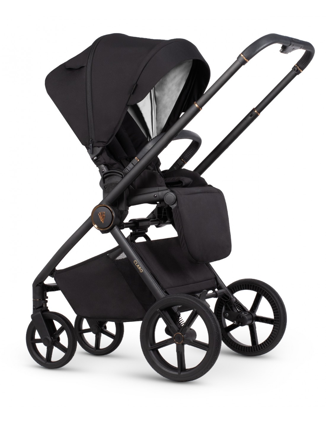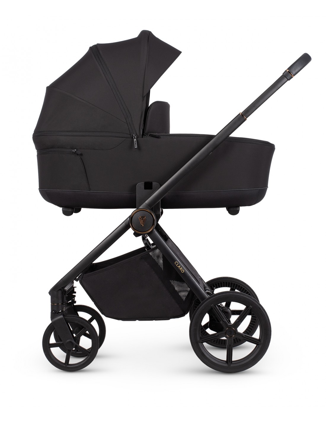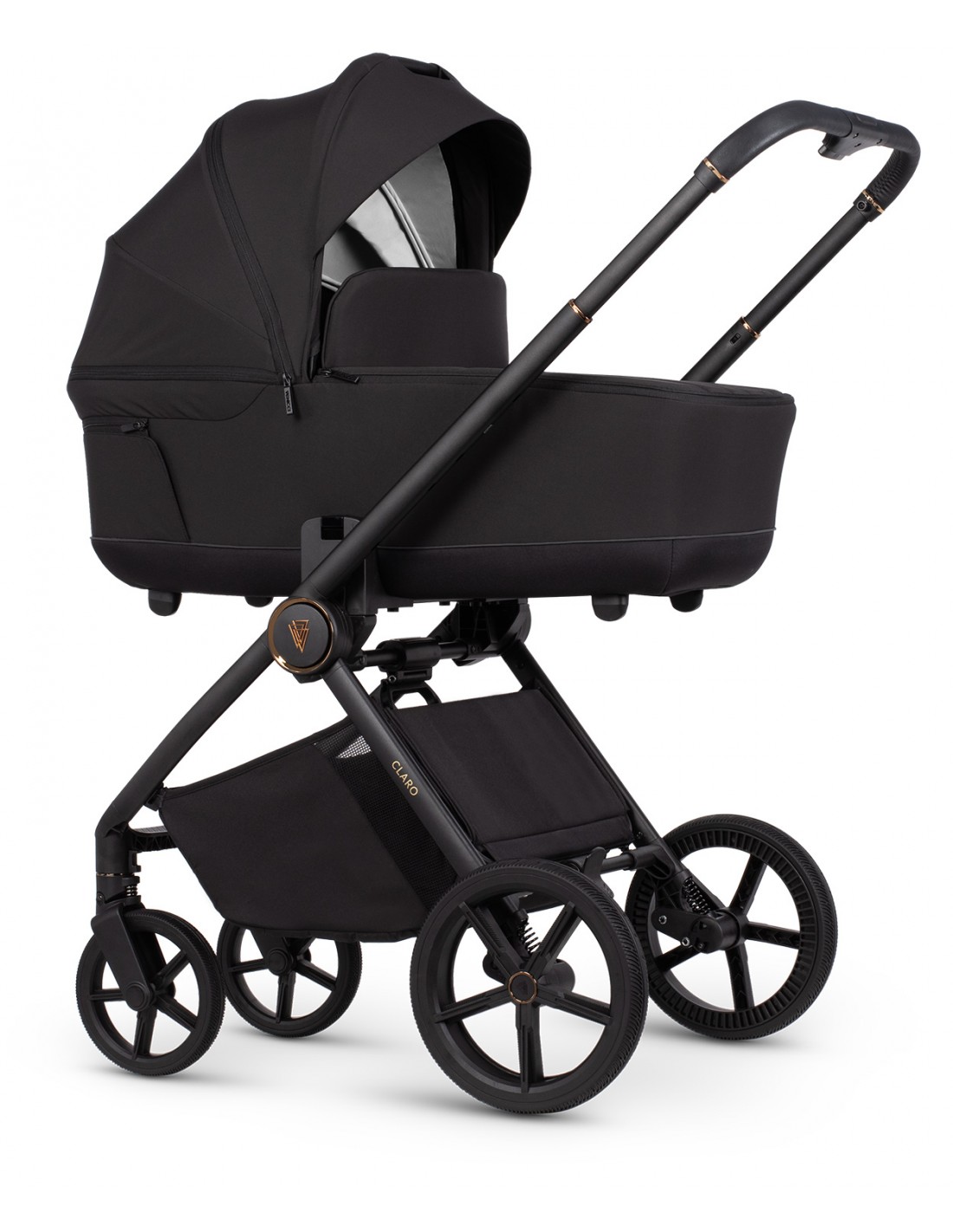 Claro features small, agile gel wheels that guarantee high durability and good shock absorption. Attention to every detail, beautiful decorations, and a delicate pattern embossed inside the bassinet make you proud to take this pram out into the city. However, Claro is not just about aesthetic design; it's primarily a construction that ensures safety for both you and your little one during every walk. We've taken care of everything, including reflectors on the pram seat and carrycot, to guarantee peaceful outings and pleasant memories.
