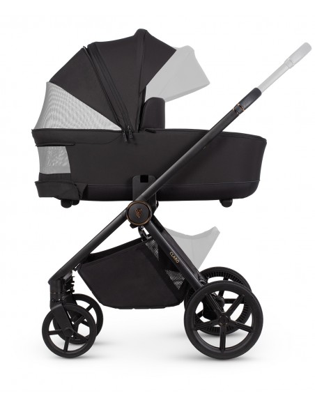 The walking adventure of your little one begins right from the carrycot. That's why we've made every effort to ensure that sleeping in it is as comfortable and safe as in their own crib. We care not only about the spine of the little one but also about their comfort—regardless of the weather. The fabric used to cover the Claro carrycot is waterproof and coated with a UV 50+ filter, protecting against harmful radiation. So, you and your little one can venture out into the city in rain or shine. Thanks to the panoramic ventilation, which provides unrestricted airflow and allows your little one to admire the world in all its glory. You'll also be pleased to know that the bassinet is a very lightweight part of the pram, all thanks to the EPP material used for its bottom. The material is also resistant to UV radiation and high temperatures. Additionally, it doesn't absorb water, which is crucial during rainy walks.