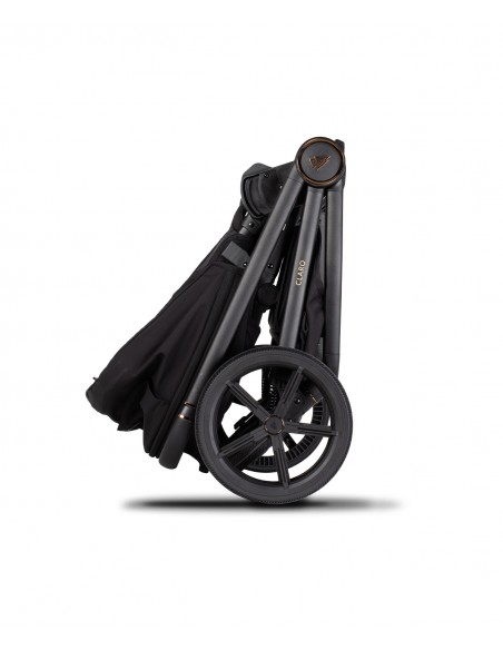 One move — that's all it takes to fold the pram frame effortlessly and carry it with ease, without feeling burdened by its weight. We understand that lightness is a feature sought not only by families navigating stairs daily but also by every mum who, as is often the case in the city, juggles multiple tasks simultaneously. With Claro, you can do so stress-free. You'll fold the pram in seconds, then throw it over your shoulder with the special strap we've added to this model for your convenience. Although the Claro frame is lightweight, its aluminum construction boasts high durability. Yes, this is a pram that will be with your child for years.