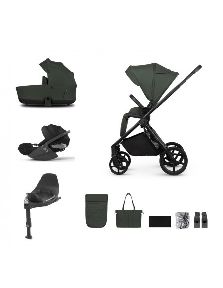 Package includes: chassis, seat unit, carrycot, changing bag, footmuff, raincover, changing mat, Cybex Cloud T car seat, Cybex Base T 360 IsoFix base & car seat adaptors.