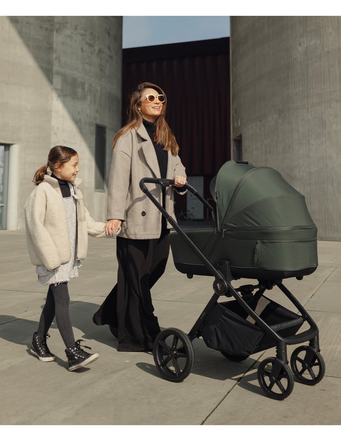 Allow your little one to freely admire the world during shared walks. At every stage of life, they can do so safely, in the pram—snug and happy. The carrycot will let them gaze into the distance through its panoramic ventilation, allowing for peaceful exploration of the world as they become increasingly curious about their surroundings.