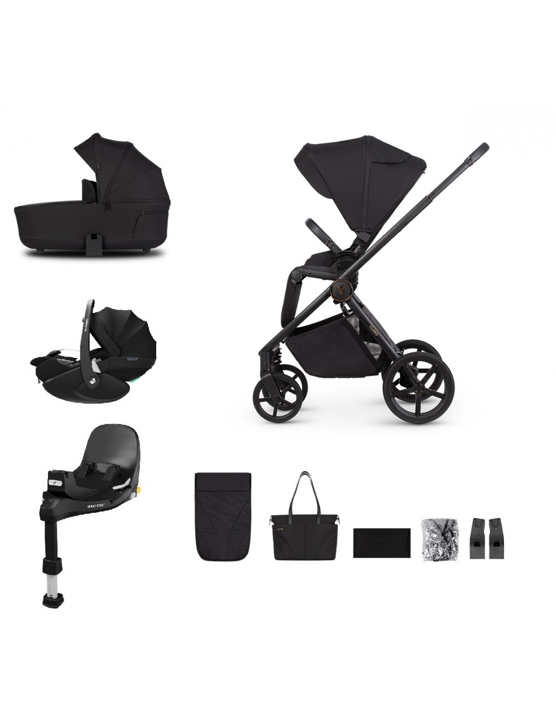 Package includes: chassis, seat unit, carrycot, changing bag, footmuff, raincover, changing mat, Maxi-Cosi Pebble 360 Pro 2 car seat, Maxi-Cosi FamilyFix 360 Pro IsoFix base & car seat adaptors.