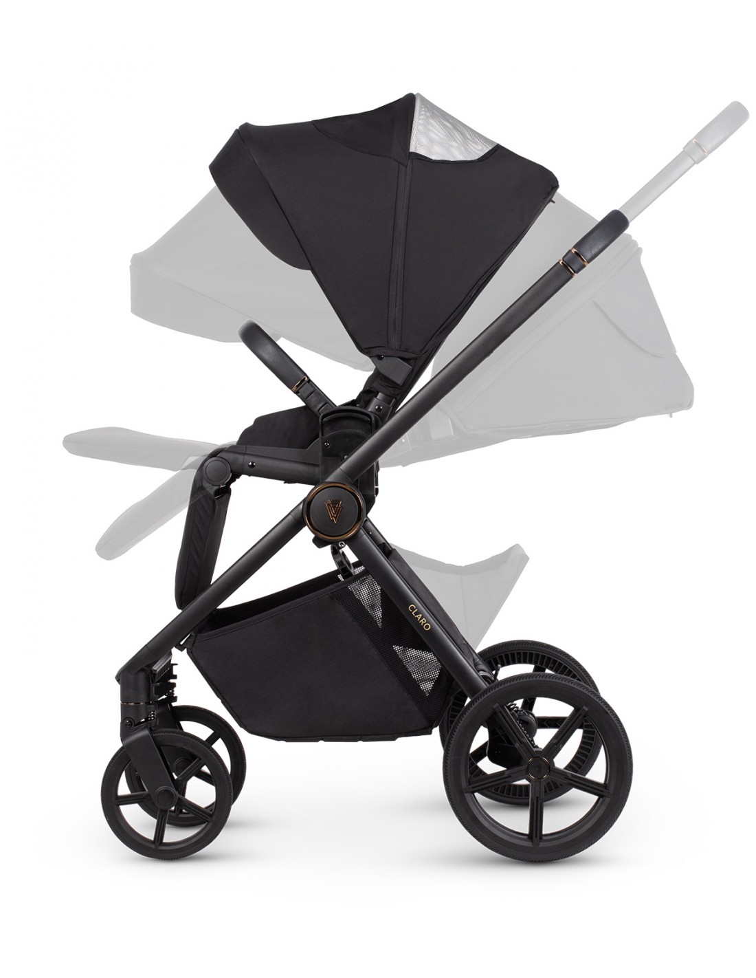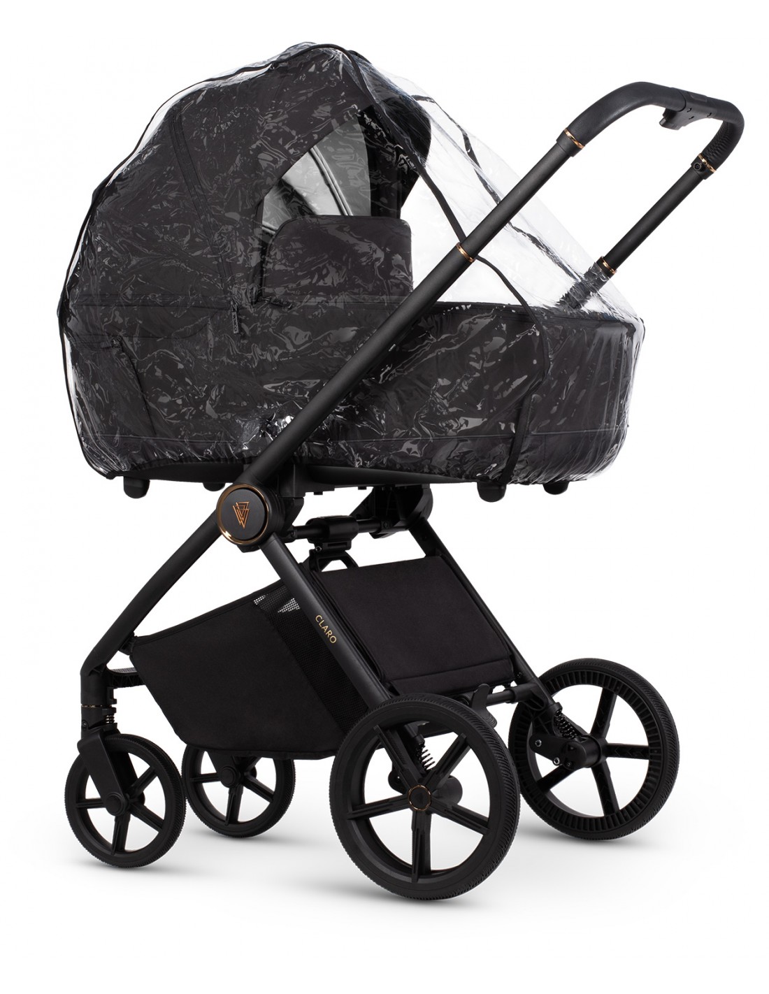 Claro features small, agile gel wheels that guarantee high durability and good shock absorption. Attention to every detail, beautiful decorations, and a delicate pattern embossed inside the bassinet make you proud to take this pram out into the city. However, Claro is not just about aesthetic design; it's primarily a construction that ensures safety for both you and your little one during every walk. We've taken care of everything, including reflectors on the pram seat and carrycot, to guarantee peaceful outings and pleasant memories.