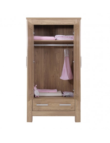 Roomy wardrobe with hanging rail, smooth-closing doors and integrated lower drawer.
