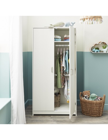 The Caro Wardrobe will help you stay organised in the baby’s room. Its spacious interior is perfect for storing your little one’s ever-expanding collection of clothes. There is a shelf at the top, and you have the choice of either one or two rails, all included.